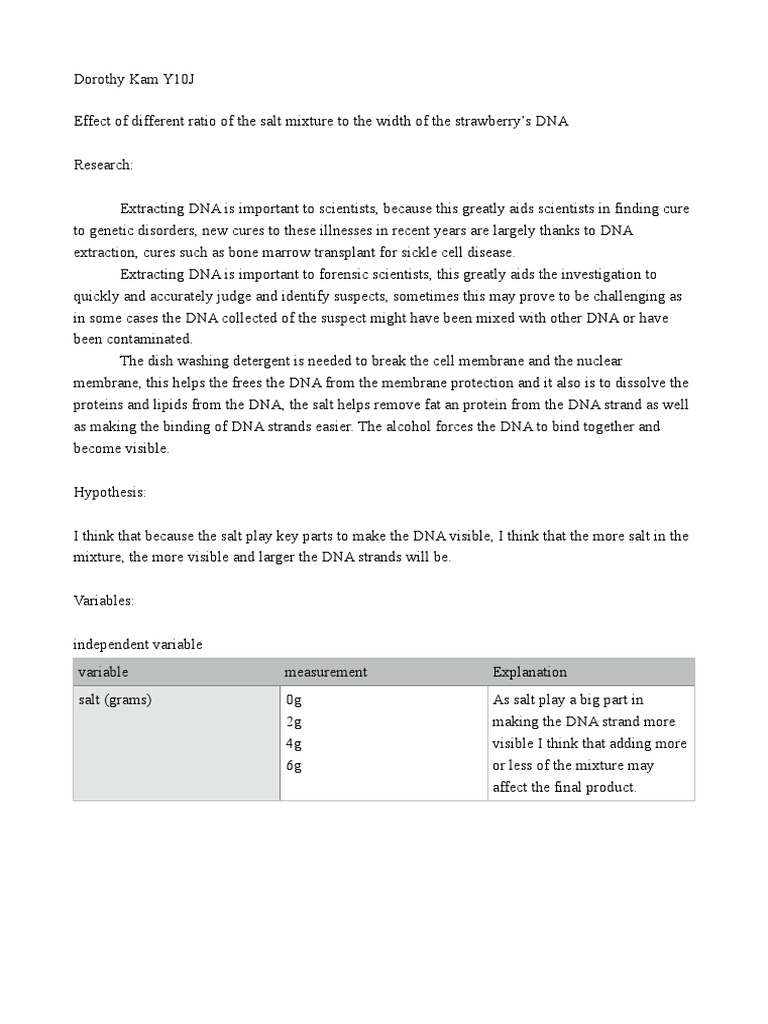 This lets us find the most appropriate writer for any type of assignment. This information can be used to improve crops so that they are more resistant to disease, insect invasion or changes in climate. This might seem impossible but with our highly skilled professional writers all your custom essays, book reviews, research papers and other custom tasks you order with us will be of high quality. Then alcohol is added to cause the dna to precipitate out. Our global writing staff includes experienced enl & esl academic writers in a variety of disciplines. We will extract dna from fruit to investigate how it looks and feels. For dna extraction, detergent is used to lyse the cell so that dna is released into the solution. This procedure is similar to what scientists have to do before they can use the information contained in this dna. We would like to show you a description here but the site won't allow us. Strawberries are chosen for this particular experiment because strawberry cell has eight copies of the genome, and it would be easier to extract the dna since it is